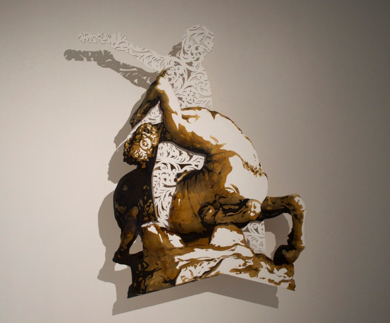 My newest piece, Coercion, is based upon a sculpture by Giambologna. In the piece Hercules –a demi-god set out on a series of trials to prove his worth– smites a centaur, Nessus. It seems very Wild West that Hercules is essentially riding a horse while killing it.