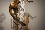 Without trying to over-think or overstate my intent –as is my want– while developing Complicit I was thinking about Western methods of icon representation, namely billboards and the utilitarian, schematic and architectural systems we use to present imagery. Comparing this to the often propagandistic, large scale sculpture of the late Renaissance I was taken with the flat frontal quality of modern imagery. In an effort to confound this a bit I pulled three separate views of the original “Rape of Sabine” sculpture from the internet, isolating each figure from a different image and angle. This facet of the sculpture engages with the ways of seeing influenced by online imagery and academia, i.e. flat popular imagery used to partially describe three dimensional objects.