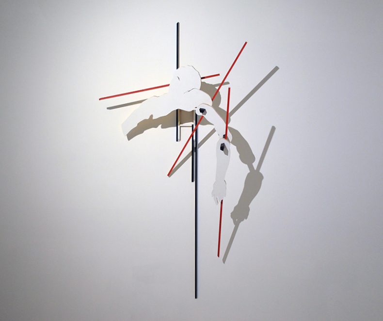 Deposition II_ wood, acrylic, ebonized cherry wood, gold leaf_ 81″x 48″x 24″