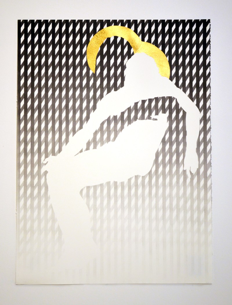 Deposition III: When I Arrive I Won’t Know Anyone_ gold leaf and pigment on paper_ 30×22 in