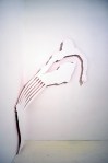 In visual art ‘new formalism’ could be considered the artists attempting to disrupt the tradition of “work on the wall” by propping paintings to lean against the wall, [links 1 and 2] or doing similar things with sticks and boards as a means to activate the space or humble the material. (I love this stuff, but it is simply not my style.) Taking on the challenge of activating difficult spaces, such as corners and the wall/floor relationship, allows me to reconsider the context of the original figure as a bridge between two planes.